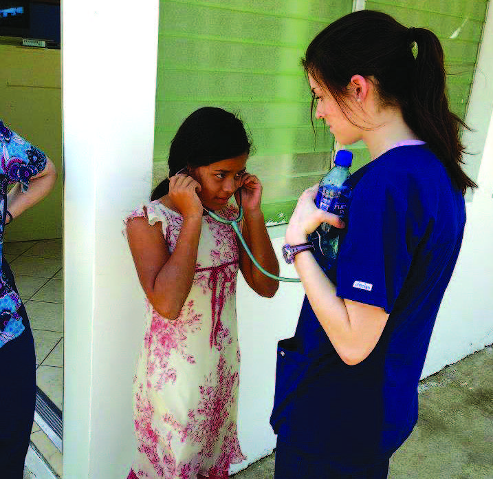 Inside the Roberto Clemente–Santa Ana Health Clinic in Limon, Nicaragua, junior nursing major Meghan Twomey prepared an injection for a 6-year-old girl who had an infected cut on her foot. Admittedly a bit nervous, Twomey knew that the child was probably even more anxious. Speaking to the girl in Spanish, Twomey assured her that the shot would be over quickly.